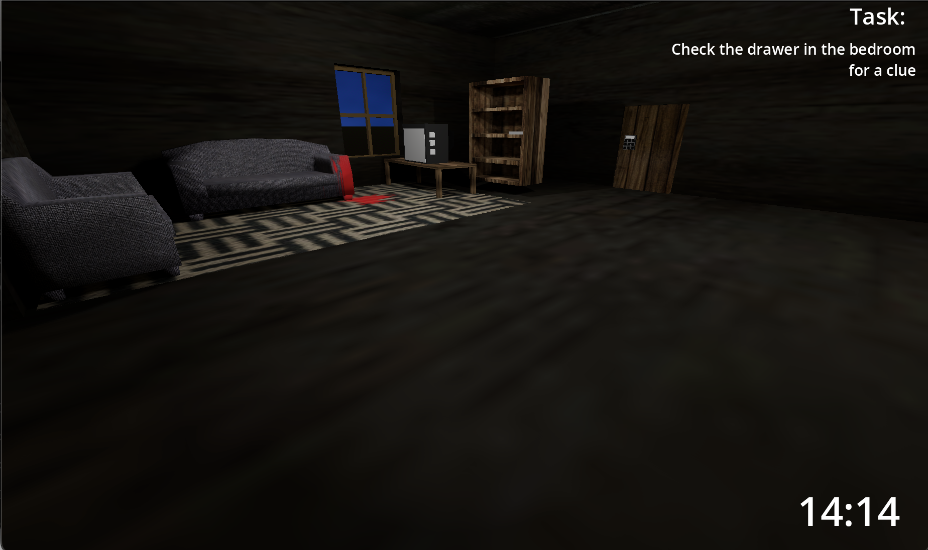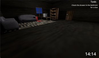 Please go full screen, I had to scale down a bit! thanks. A horror 3D game. You are kidnapped and are left clues to escape out of the house. The killer has set a trap with a few clues around the house in the form of notes. If you are smart enough to solve his riddles and escape within 15 minutes you are truly a survivor. BUT if the time is up and you were not able to solve them, then you die, the killer kills you.